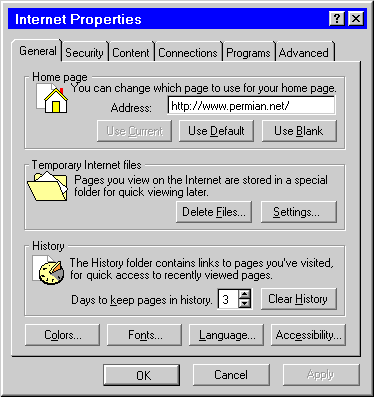| 1. Whichever way you get to Internet Options: Start > Settings > Control Panel, or |