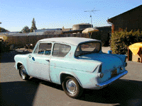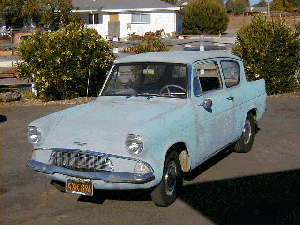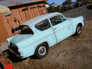 This is an English Ford - Anglia that would be perfect for Austin Powers -- the engine has been rebuilt and this car is licensed and drives daily.