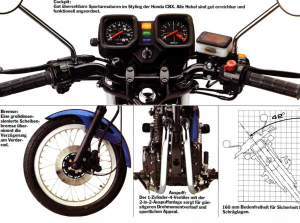 Yes folks I hear you laughing - car hunting and street racing with that little dispatcher bike? But power isn't everything. This fine little lightweight goes wonderful around the narrow Odenwald streets. Nevertheless more power wouldn't be to bad. I'm looking for a cylinder head and camscraft of the CBX 250 RS or 350cc. I would be glad if one could offer me any from whole bike to wreked parts.
