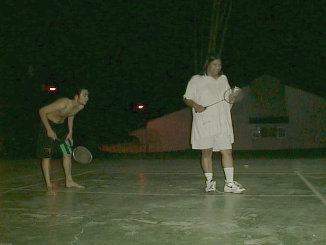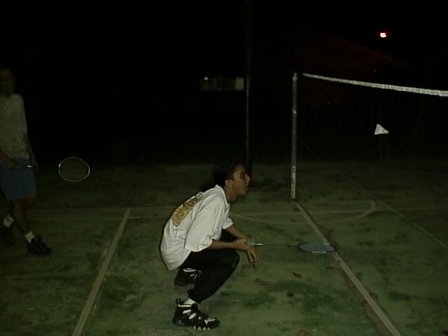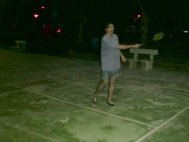 You might wonder why I have this complete idiot up there , ill tell u why OK , most of my friends are as blur as Homer , My friends and I do almost everything together , badminton on most weekdays , movies on Saturday afternoons , hunting for ghosts and clubbing . I spend most of my time with Saleem who is the only person on this planet that can sleep 11 hours a day , he is OK but gets touchy when he is losing at something , then there is Maharedza , the potentially dangerous kind (especially when he is high). Recently he has been trying to take up golf , he is trying REAL hard , Maha is another one who whenever he gets angry cant control himself , expect to see things flying around. Burn who has weird ideas when it comes to sex i.e he wants discussed with me how he would screw his own daughter. Now we have Lan who is a real blur case , one night recently we went to a disco in a group and he actually got lost , we almost left him. Adi is a very quite one who looks stoned all the time cause of his eyes . Ali is one who likes to irritate people constantly , I think the only time he ever shuts up is when he is asleep unless if he talks in his sleep. Jimmy is another quiet type but at times he would rise from the dead and speak , his girlfriend shahrina is always around too we call her chip cause of her commanding appearance and small size. Well there are more friends whom I hang out with but im too tired to type out what their names are so don't be angry. Below I have included a some pictures of me and one or two of my friends playing badminton.