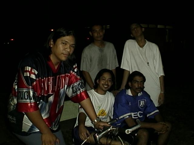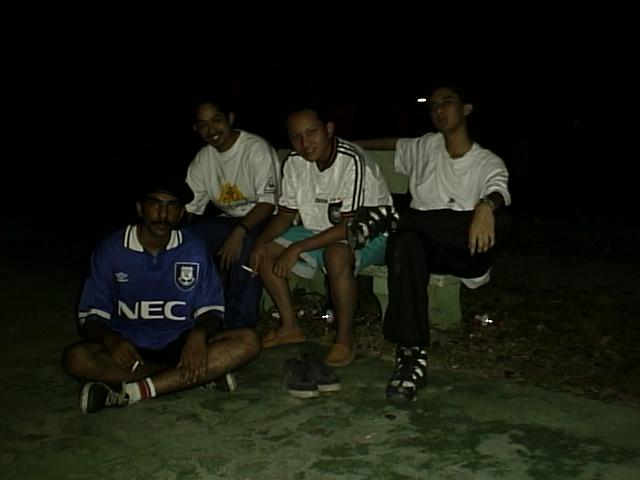 There , on the top left is Me in the front and those at the back are my followers ,heheh just kidding , ikram is sitting and beside him is saleem , standing is jimi and maha on the right. Above here we see maha pondering on why his shot ended up in the net . These friends are good friends , thats all I have to say , sometimes we may tend to get annoyed with each other but I guess that is normal.