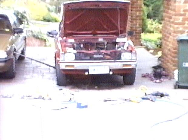 Comment: Gearbox X-member dropped, radiator out, head off, Engine angles upwards