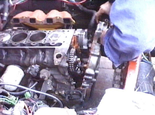 Comment: Head off, timing cover off, take sprocket and retainer off. MARK chain