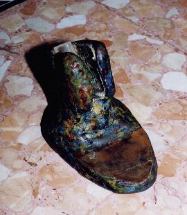 ...niente di piu' errato!!! Si tratta semplicemente di una forma di creta modellata sulla forma del rasoio elettrico, inclinata secondo la posizione plu' consona in modo da permettere al rasoio di raggiungere tutt le parti del viso. Anche senza mani.... mi rado da solo...