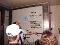 ![]() MSgt Roger Hooker guides our tour. On the map you see the 15 command flights, each controlling 10 Minuteman missles. The colored area at the top left is Kansas City. |