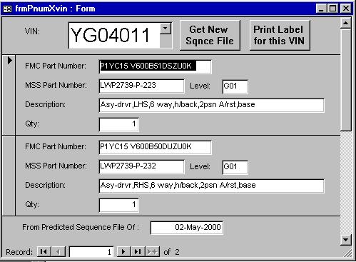 Clicking on the print label button prompts for whether or not print or preview is required, then prompts for sequence number.