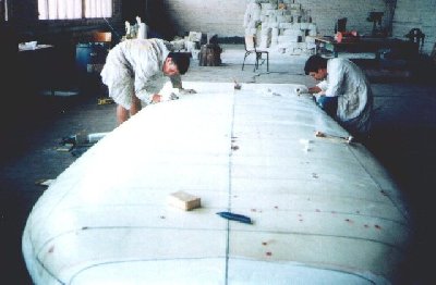 A partir du master, on fabrique les moules négatifs en tissus de verre (3 mois). |