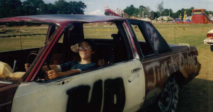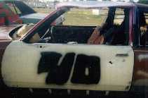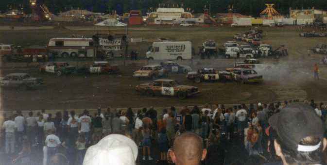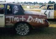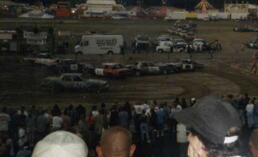 Our bit of advice for James was that he should use the superior speed and maneuverability of his car to pick and choose his hit's. His car would take too much of a terrible beating before crumpling up and dying. Jim nodded his head with complete understanding. As it was, we did not get into the same heat. As I had a wagon, they stuck me with the rest of the big cars, while Jim was in heat three. In the 2nd heat, some guy in a mid-80s Regal went out and won the heat! They did penalized him a posistion, however, as his trunk still had the spare tire in it!! It gave us hopes that Jim's 2nd season would be a successful one.