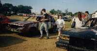 Jim always was interested in the derby. He came and watched me drive a few times and always talked about doing it. Well... his second year of 'doing it' is behind him and he's fostered a lot of good memories from it. I've been there to help him prep his car when I could and impart any knowledge I can to him... Like he'd listen anyway! Honestly, Jim is probably the most intense driver to hit the track in years. He makes up the lack of experience with an energetic zeal that is rarely seen. Even the officials say he's 'very enthusiastic'. I know for fact that if he sticks with it, that he's going to win someday and win big.