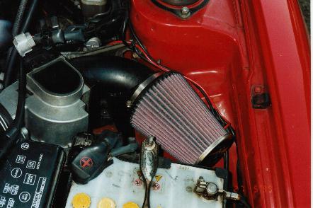 K&N luchtfilter met zelf gemaakt opzetstuk.