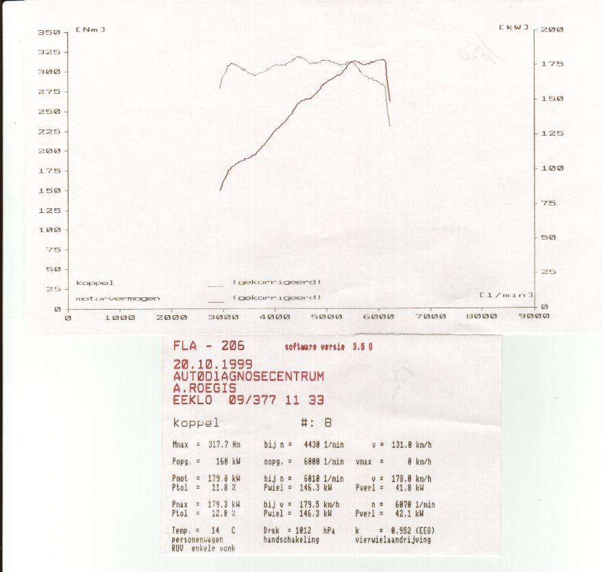 | Max. kW aan de wielen | 132,9 kW / 180,7 pk.- 5800 Rpm - 172,0 km/h | ||