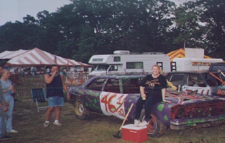 I now have my Mom hooked on Demo's too. This is her car before she ran. She won 1st in the Powder Puff and 4th in the Feature!!