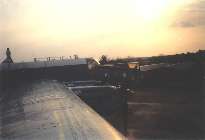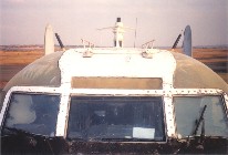 Over no.3 engine, on roof in front of cockpit and from starboard wingtip at dusk