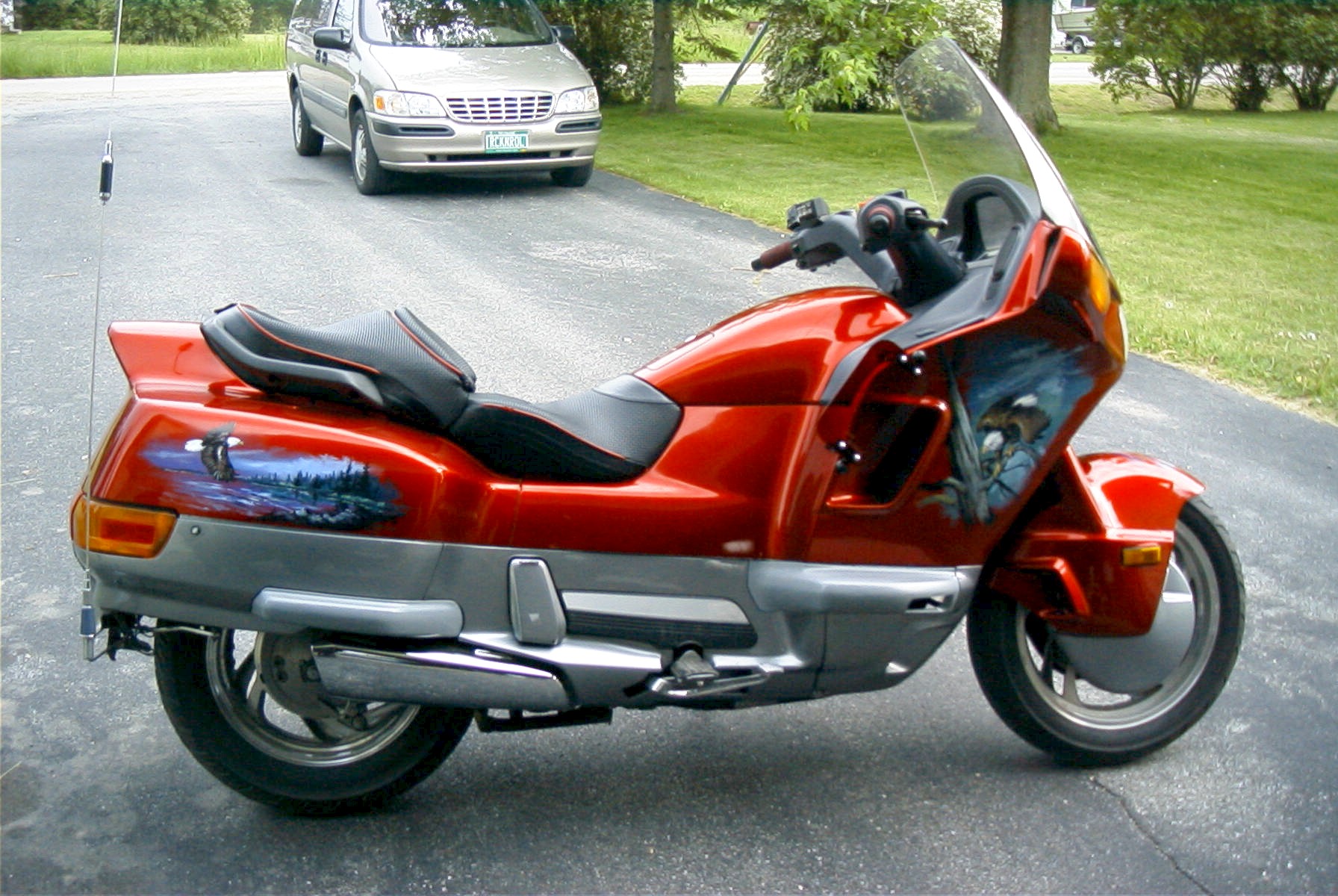 Eagles. Both sides are painted as well as the front and rear fender. The motorcycle