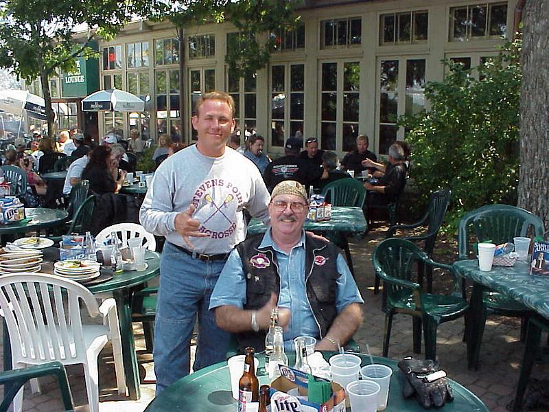 Todd Skar and Mike Prapoulenis on the deck of the Starved Rock Lodge. The