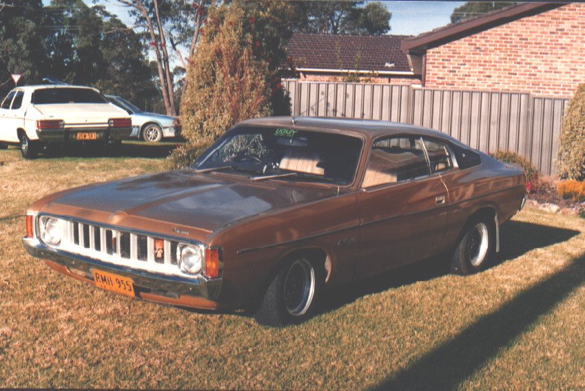 This is a 1976 Chrysler Charger, a beautiful piece of craftsmanship that went like a scalded cat. I put 8 inch Hotwire wheels on, and some nice fat rubber. I also lowered it, and put on a set of extractors and a 2 1/2 inch exhaust. The Charger had a HUGE sound system, and was a real fun car to drive.