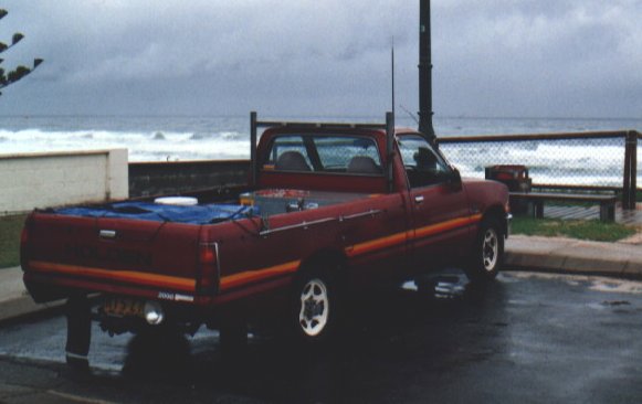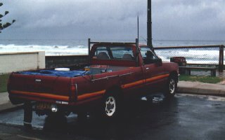 After a boring but stable relationship with my Laser the amazer it was written off when I was run off the road and into a rock wall by a truck. But every cloud has a silver lining, and this gave me the oportunity to purchase my latest set of wheels....A 1983 Holden Rodeo. This ute (truck?) is still fairly standard with the only modifications to date being a sports exhaust and air cleaner, and wider wheels and rubber under the back. The Ute is far more practical than the little Laser, and my dog Jemma loves it too! Click here to see her doing 120km/h.