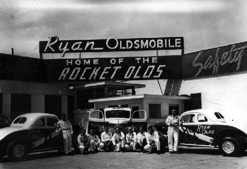 Ryan Oldsmobile...Home of the Rocket Olds. 1952. Team Cars.