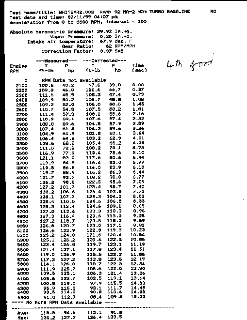 Dyno numbers of the car with MR2PP cams, Akimoto intake and MR2PP throttle body.