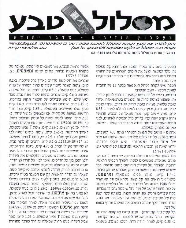 Megamoto Track to Tzipori: Page 1, Page 2, (for internet ver.: here)