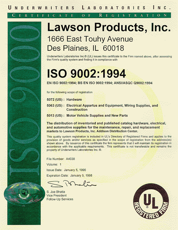 ISO 9002 Certification