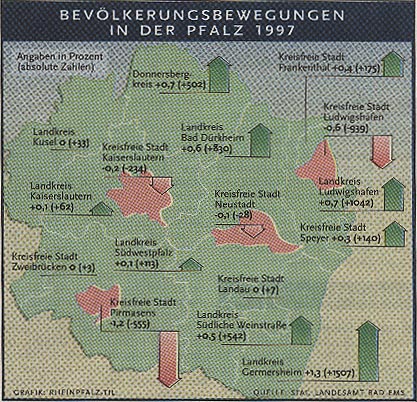 die Pfälzer aus ? Weniger Neugeborene als Sterbefälle - 1997 Zuwachs durch Zuwanderung |