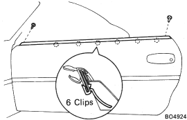 INSTALLATION 1. INSTALL DOOR BELT MOULDING (See step 12 on page BO-17) 2. INSTALL FRONT DOOR