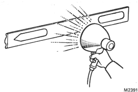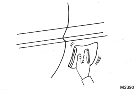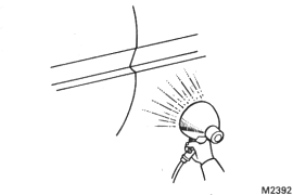 2. HEAT BODY MOUNTING SURFACE Using a heat light, heat the body mounting surface to 30-50�C (86-122�F). NOTICE: When the moulding is installed, the temperature of the mounting surface should be 20�C (68�F) or higher. |