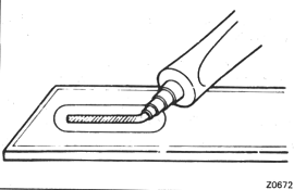 APPLY ADHESIVE TO DOOR OUTSIDE MOULDING Apply adhesive to both punched out ends of the moulding. NOTICE: Install the moulding within 7 minutes after applying the adhesive. |