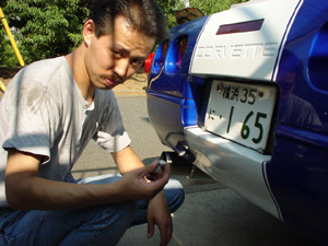 日本のナンバーを取り付けるステーがあるのだが、 これがリベットで固定されている為に外すことができない |