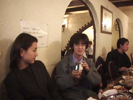菊さん提供によるコンパニオンD子さん(○8歳)を口説く ごきげんな新倉氏 (笑) |