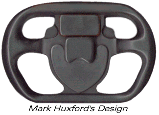 This design of an F300 wheel was sent to me by my friend Mark "Huxford" from New Zealand. He utilized several layers in the wheel "core" that gives it both strength and a feeling of depth. The basic design is a combination yoke/ wheel theme, which I prefer more than a simple yoke idea. A yoke is too aircraft-like for my taste, and doesn't allow for a place to keep your thumbs in closer access to the buttons.