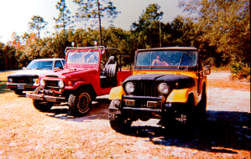 This is a picture of our president Jerry's 1968 Toyota Land Cruiser FJ-40 and our director Joe's 1966 Jeep CJ-5 before a recent excursion. | |||||||||||||