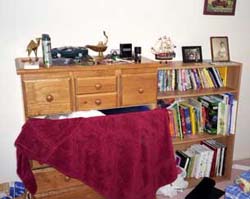 Here are some pictures of what my room look like. The lower shelf is only magicbooks, imagine what my luggage weighed.. | |