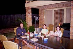 Picture taken just after we finished dinner out doors, and just before we discovered the 13 red-back spiders hiding under our chairs. | |