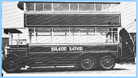 Guy Motors of Wolverhampton supplied the first double-decker to enter the Blue Line fleet. Resplendent in its gleaming new paintwork, UK 2399 carries the labels of body builders Reynolds Bros. of Barnsley in this 1927 view. The speed limit for this vehicle was 12m.p.h. [Photo from M. Fowler collection]