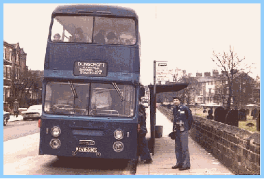 The author poses for a photograph at Doncaster Christchurch on a Saturday afternoon in 1978. The Setright 'Speed' ticket machine was the only one used on Blue Line and was often loaded with ticket rolls 'begged' from other operators.
