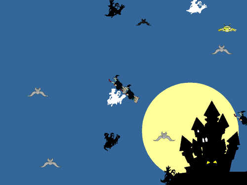 Halloween RKM2Totally insane ;] - Dancing bats, spooky house with flashing eyes, ghosts, witches and even alien spaceships - For Roy, Karen and Matthew. |