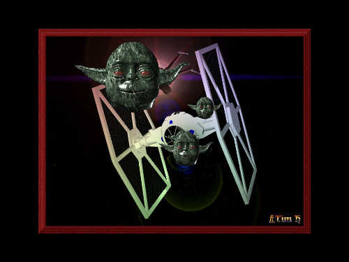 Tie X YodaSpiralling Tie fighters, X-Wings and green marble Yodas! - Stellar background |