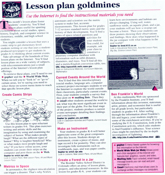 Web (WWW), such as www.discovery.com or www.teacher.org. All across that page are hyperlinks that