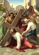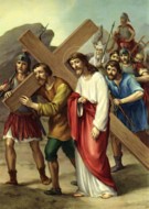 Fifth Station Simon the Cyrenean Helps Jesus Carry His Cross. Simon unwillingly assisted you; may I with patience suffer all for you. |