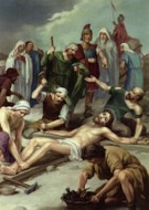Thirteenth Station Jesus Taken Down from the Cross. Receive me into your arms, O Sorrowful Mother; and obtain for me perfect contrition for my sins. |