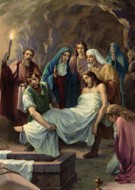 Fourteenth Station Jesus Laid in the Sepulchre. When I receive you into my heart in Holy Communion, O Jesus, make it a fit abiding place for your adorable Body. |