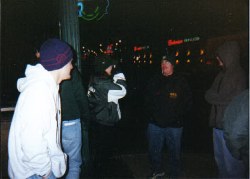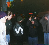 Outside the Hard Rock Cafe, the clarinets get "foxy" with Jimi Hendrix, oh yea, and Matt.