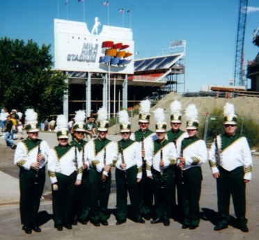 The 2000 Marching Clarinets outside Mile High Stadium.