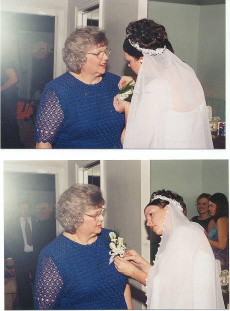 (Top) Aaron, Joyce and Vance (Bottom) Crystal pins Chris.