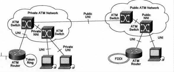 From the figure 2 below the UNI connect ATM end-system which included hosts, router and so on to an ATM switch, while an NNI may be imprecisely defined as an interface connection two ATM switches together; slightly different cell formats are defined across UNI and NNI. More precisely, however, an NNI is any physical or logical link across which two ATM switches exchange the NNI protocol. So that, for this reason the connection between a private ATM switch and public ATM switch is a UNI – known as a Public UNI – since these switches do not typically exchange NNI information.