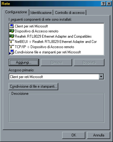 Configuriamo Windows95/98 per una rete con NetBEUI