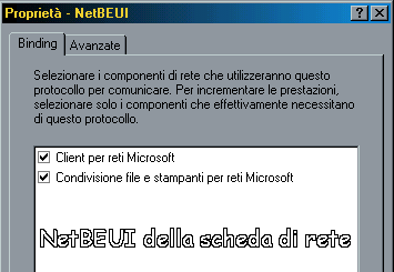 scheda di rete dovrebbe esserci solo il NetBEUI e deve essere