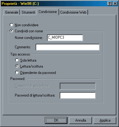 rete alcune delle vostre risorse (file, cartelle, stampanti...)